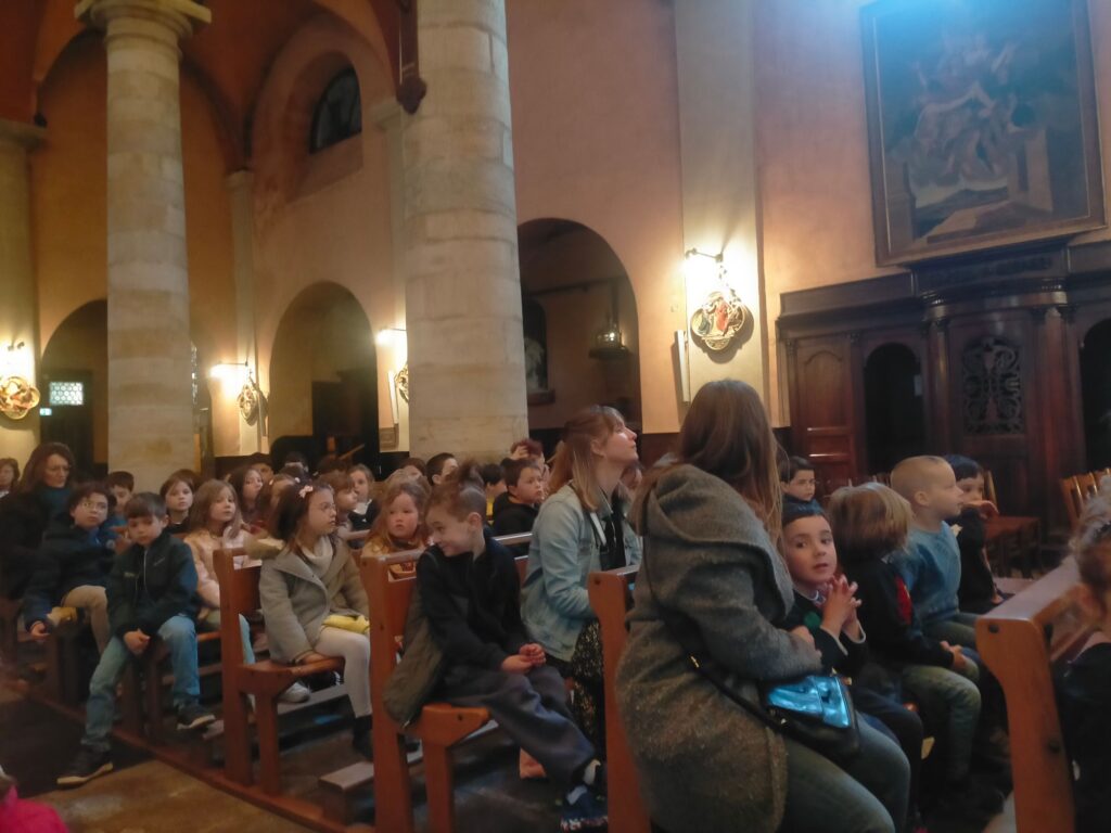 Nous avons aujourd’hui suivi le chemin vers la fête de Pâques, que nous avons célébrée à l’Eglise Saint Pierre de Lezoux, accompagné du père Valette, de Huguette à la guitare et Mme Passerieux. Les enfants ont pu chanter et se remémorer comment nous pouvons apprendre à aimer encore plus, à pardonner, à mettre plus de joie et de bonté dans notre vie.